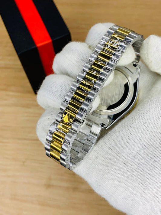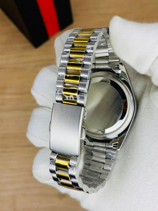 Black Analog Dial Two Tone Chain